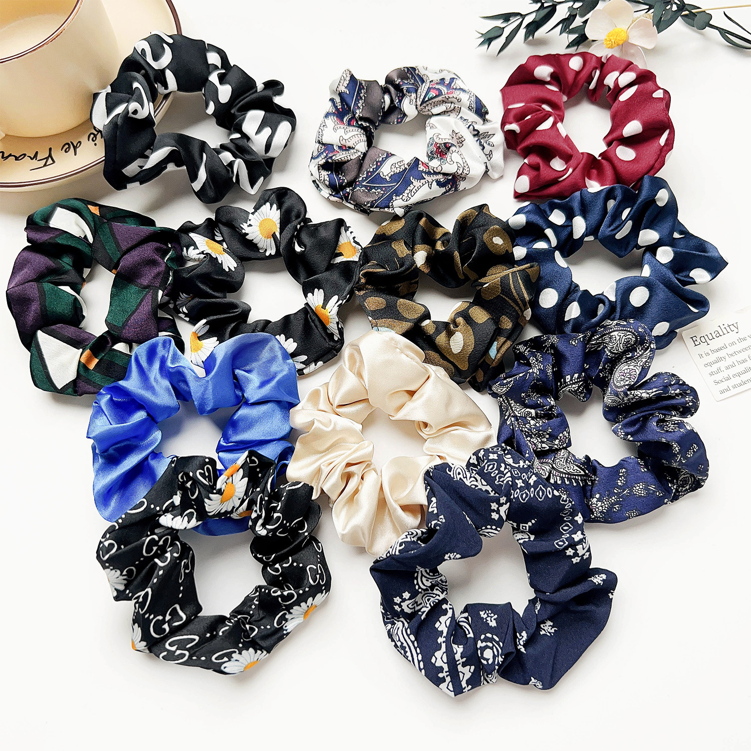 - Custom full-colour satin hair scrunchie